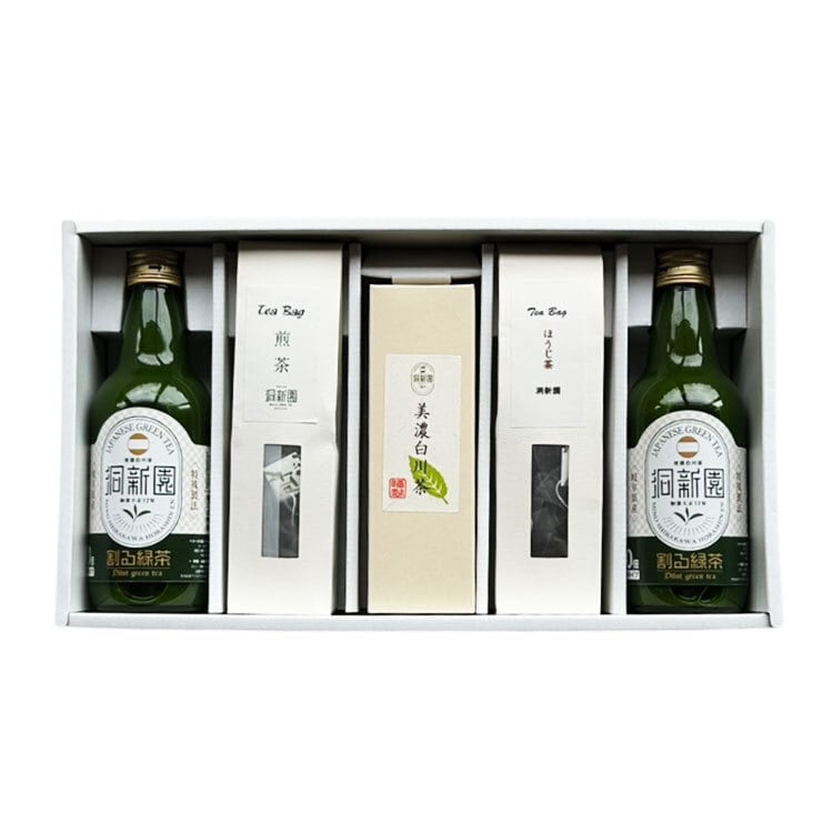 お歳暮の贈り物にぴったりな「2025お歳暮ギフト Bセット」が登場しました!このギフトセットには、割る緑茶を2本、煎茶100g、そしてお手軽に楽しめるほうじ茶や煎茶2gのパックが10個入っております。多彩な風味を楽しめるセットです。